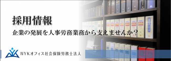 image004NYKオフィス社会保険労務士法人の採用ページをご覧頂き、ありがとうございます。代表の米山です。当法人は大阪市の天王寺を拠点として、大阪府を中心に企業様の経営サポートを目的に労務関係のサポート、給与計算やマイナンバー対策など幅広い業務を行っています。