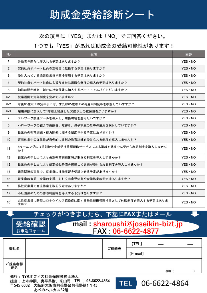 【助成金受給診断シート】