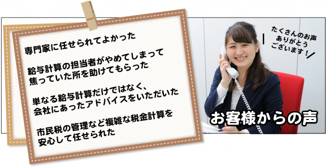 • 給与計算の担当者がやめてしまって焦っていた所を助けてもらった