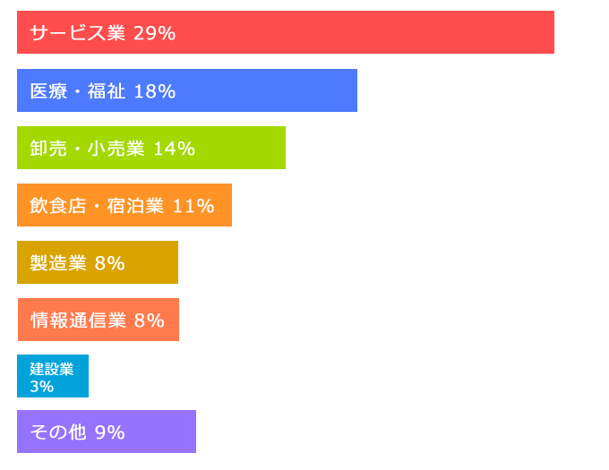 これらの特長がサービス業や医療・介護の企業で特に多く見られます。事務負担が増えるため、